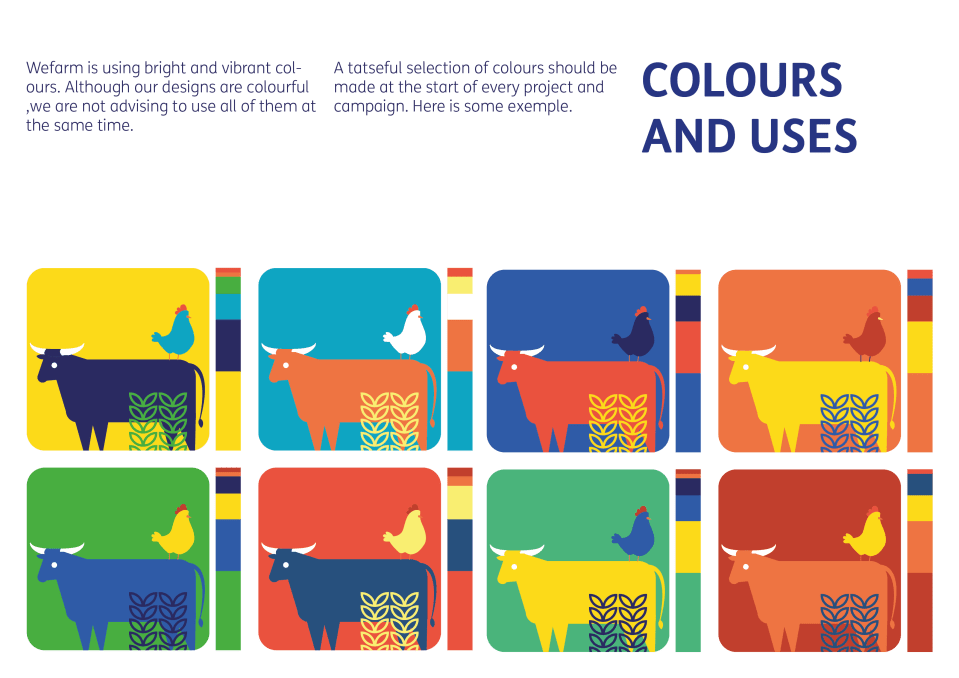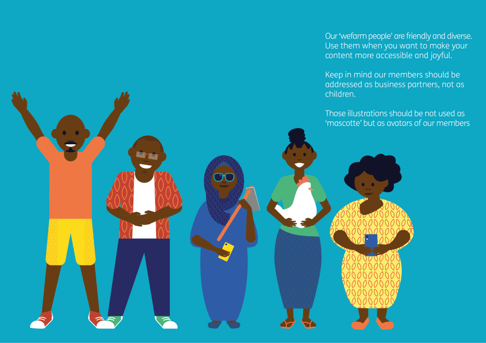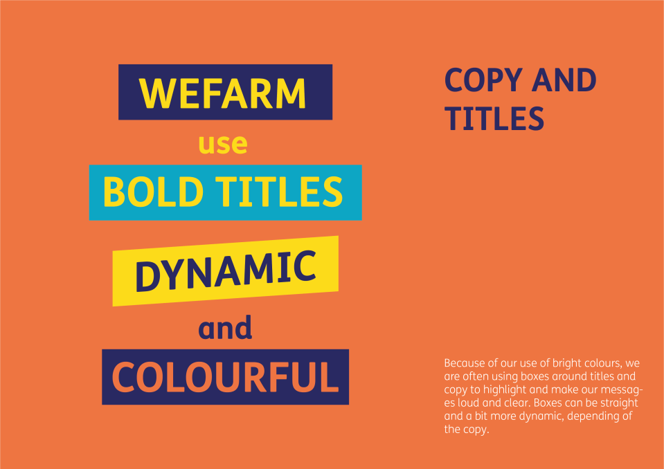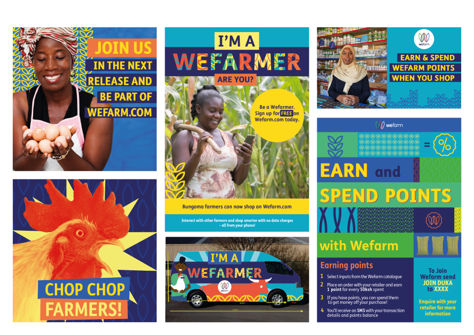 Based on Wefarm brand guidelines, I developed the company visual language by using its vibrant colours and smooth geometric shapes.